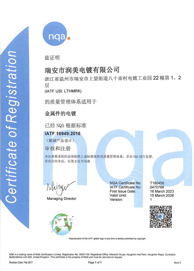 Copyright ©2025 瑞安潤(rùn)美電鍍有限公司 版權(quán)所有 地址:溫州市瑞安東山八十畝電鍍工業(yè)園 咨詢熱線:13706888155